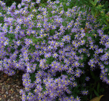 Ce petit Aster forme un petit buisson au feuilles allongées. En automne, il se couvre de ravissantes petites fleurs bleu violacé au cœur jaune.